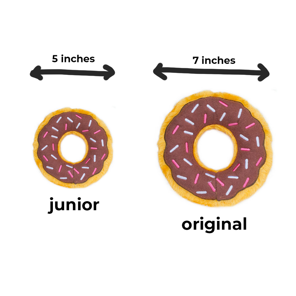 ZippyPaws Donutz' embroidered "sprinkles" and toppings make them look like real delicious donuts! Junior size is perfect for small dogs while the original size is good for larger pups. Each donut contains two squeakers to keep your dog entertained.