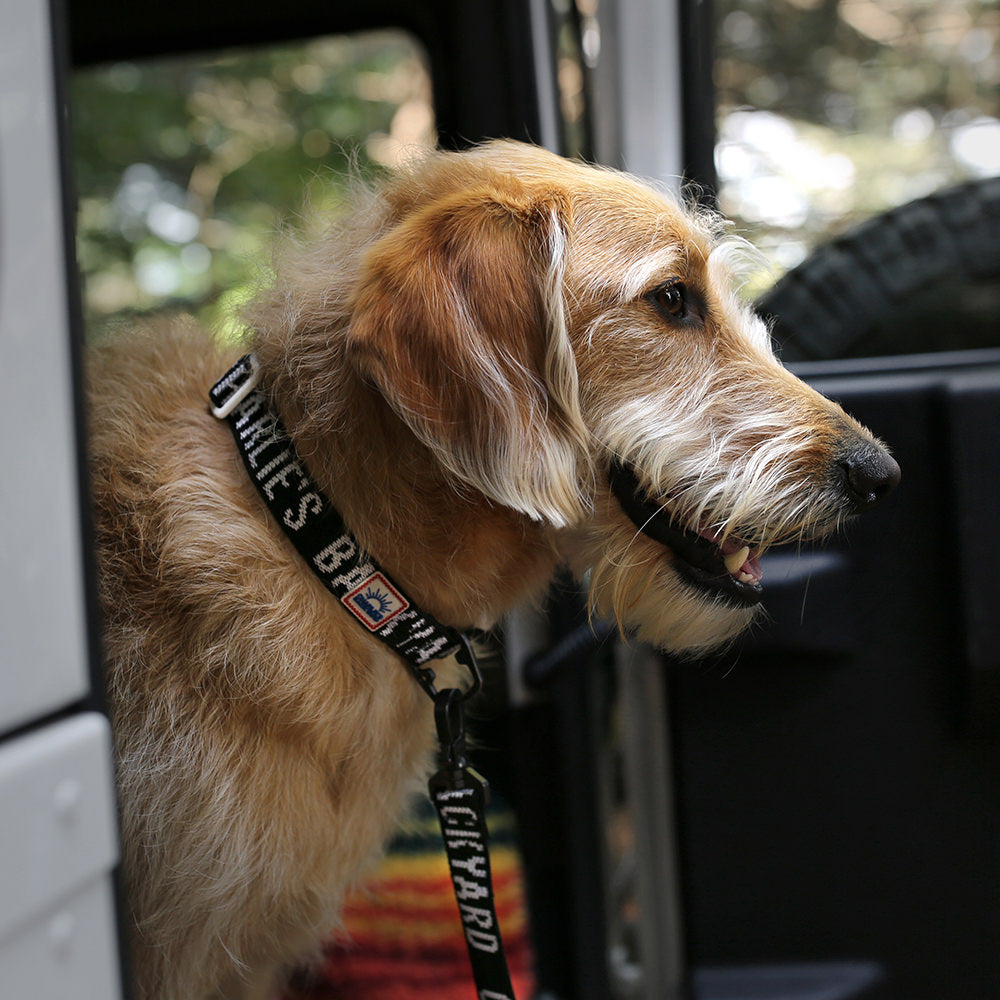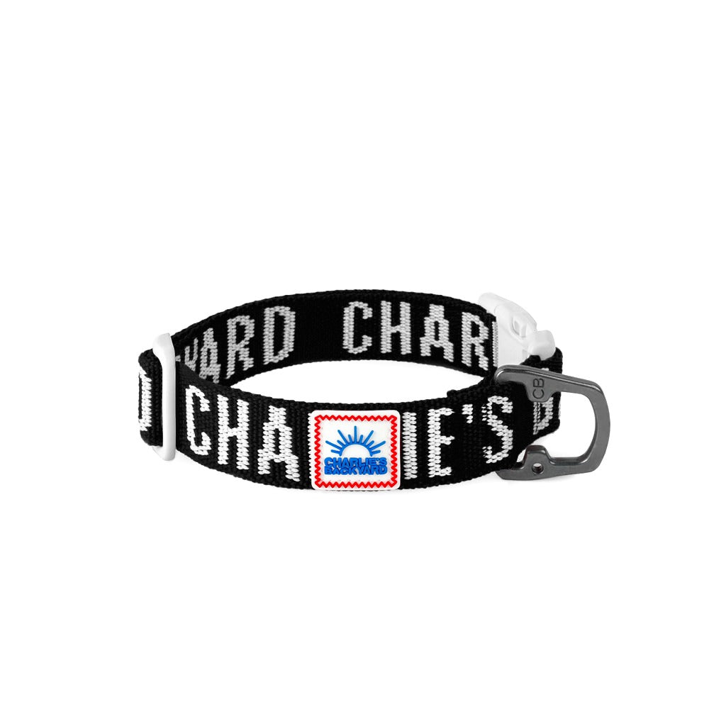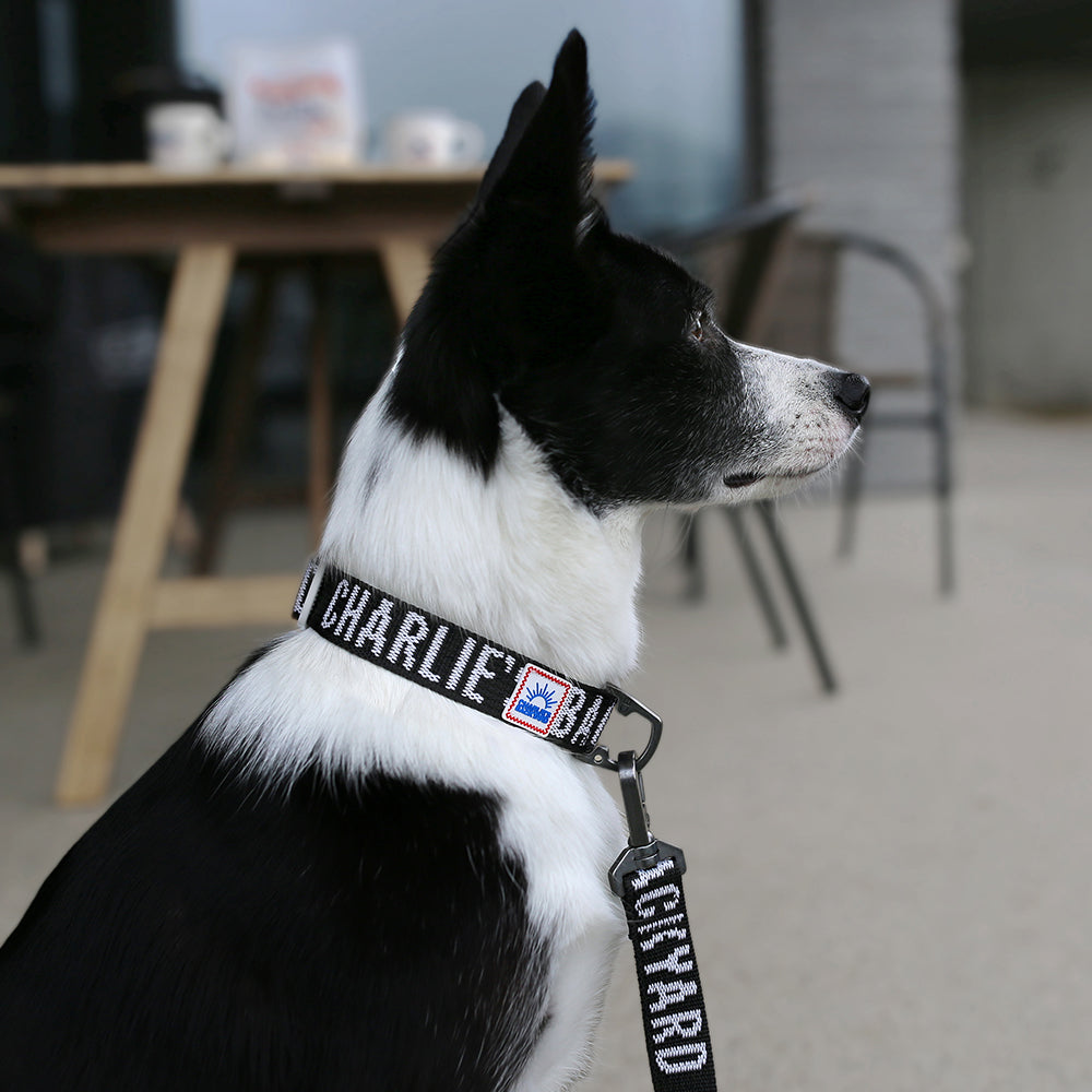 The retro themed trip collar with lettering jacquard webbing from Charlie's Backyard is here. The logo engraved D-ring is designed to maintain the proper angle at all times, allowing quick connection at any time, and a small hole is added to allow name tag attachment. The collar is made of lightweight material so your pup will not feel burdened. It also has a wider width so more comfortable for you dog to wear. The sturdy bracket and 4-points lock make sure the collar is secure and safe for all breeds.