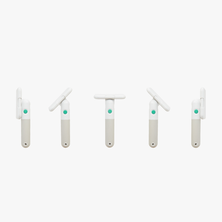 To adjust the angel, you can hold the button while turning the head, and release the button to lock in your desired angel.