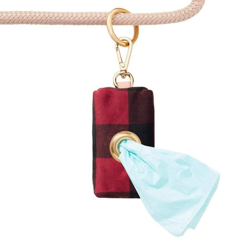 A beautiful poop bag holder makes chic happen when sh*t happens. Made of durable waxed canvas in red and black buffalo check.