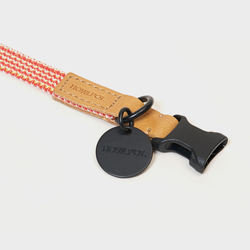 The "We Are Tight" series of dog collars from Howlpot are 100% hand-made with attention to details in South Korea for small to medium sized dogs. This ribbon collar is created with German climbing rope and accented with Buttero, genuine Italian leather, brings a perfect combination of luxury, functionality and reliability. The ribbon collar is much lighter than their regular rope counterparts.