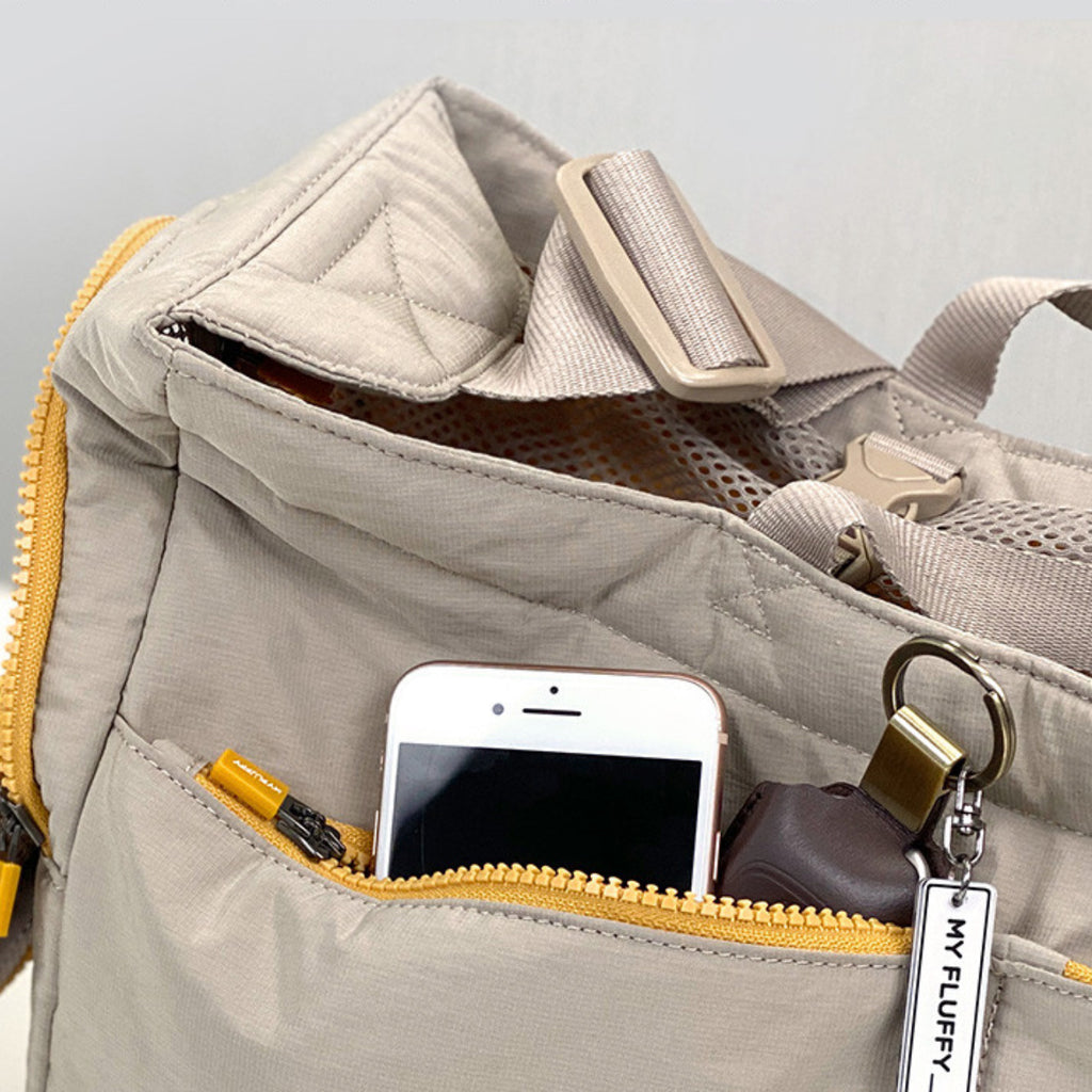 This multi-functional bag has many side pockets to store daily essentials of both you and your pet. The surface is water proof, and the bottom of the bag is cushioned so it won't strain on the joints of your pets. You can also link your pet's harness to the safety hook for extra security. There's also a side opening that allows your dog to see what's around.