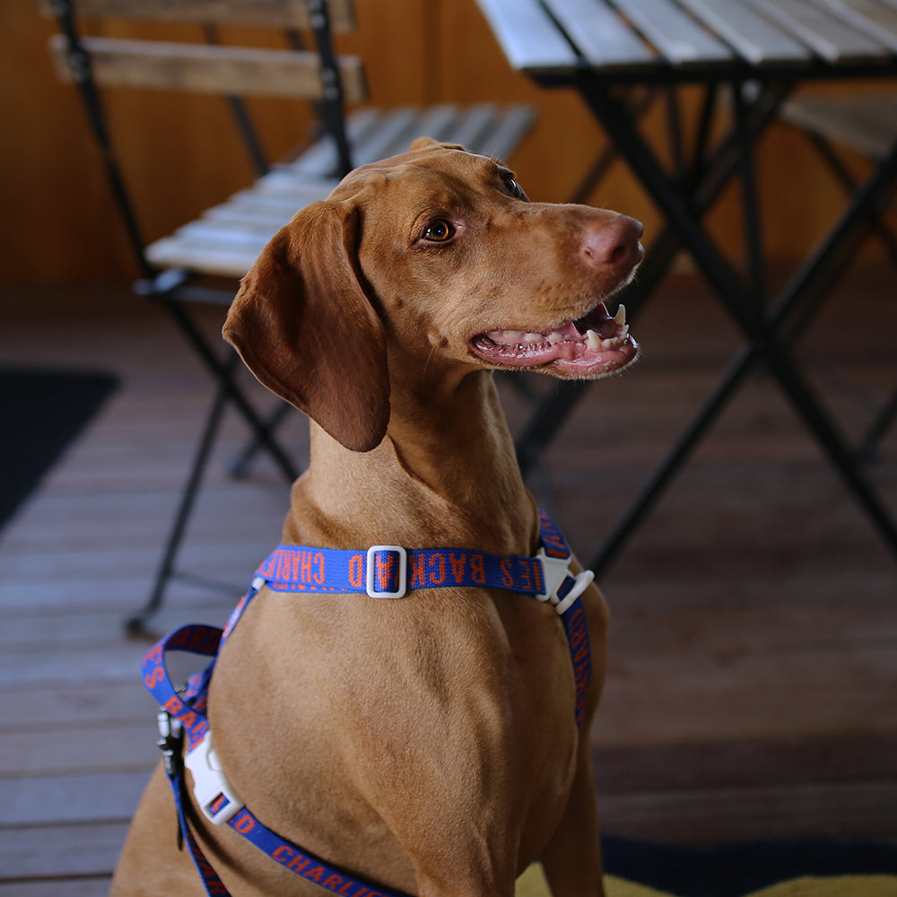 The trip harness with its unique and flashy design is guaranteed to catch eyeballs in your outings. Its Y-type pattern is created for an optimal fit that went through numerous tests. It can relieve pressure from your dog's trachea. There is a front clip and a D-ring on the back; you can attach the leash to either one of them. There is also a strap handle on the back which you can lift your dog with to gain quick control when necessary. The D-ring is designed so that it will not touch your dog's back, and all other sewing and detailing is carefully manufactured to not irritate the skin. It's also the only harness from Charlie's Backyard that can fit larger dogs.