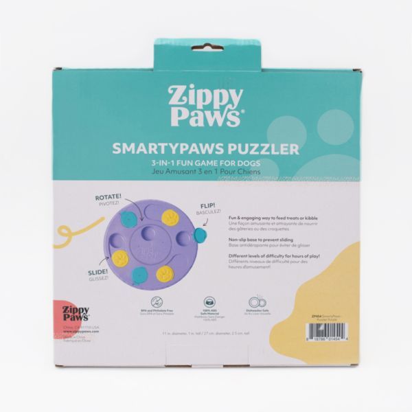 It’s time for doggo to take matters into their own paws with the SmartyPaws Puzzler! This all new interactive toy from ZippyPaws teaches dogs problem solving skills for a fun and engaging way to receive treats or kibble! The 3-in-1 game features different levels of difficulty that entertain and reduce boredom while teaching your pup problem solving skills. Non-slip base to prevent sliding.
