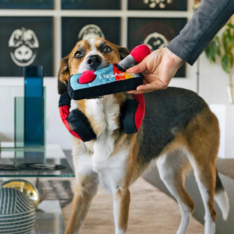 Oh good old memories. Take a cruise down memory lane with Pet PLAY's 80s classics plush dog toy collection that showcases some of the most iconic 80s goodies. Playtime will be "like totally radical" with this iconic set. Doesn't matter if you're Player 1 or Player 2, I am sure you will never have enough fun with this joystick.