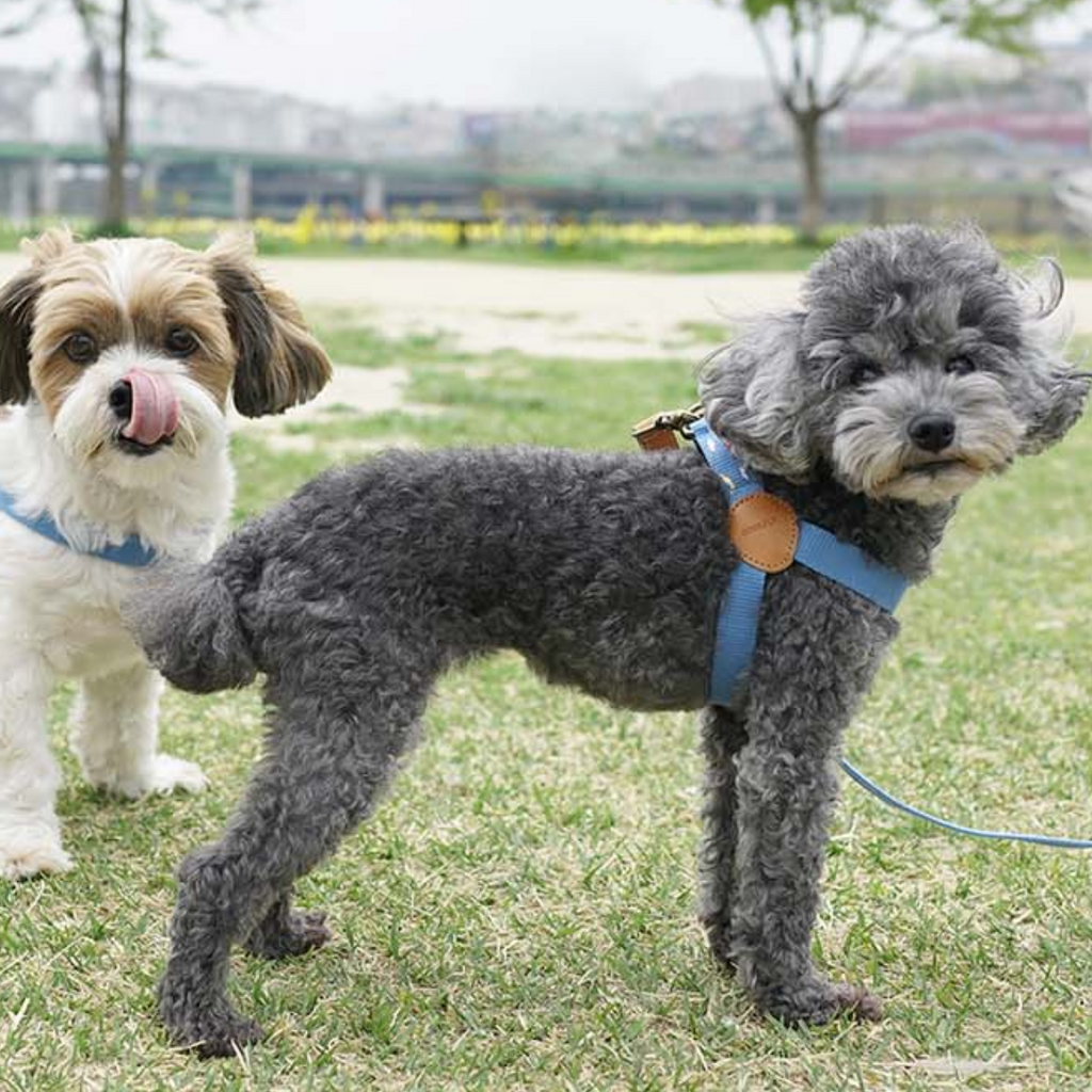 Note: the length of the adventure harness can only be adjusted slightly, make sure to leave some room for your pup so she's more comfortable. Spot clean only, the leather part should not be washed.